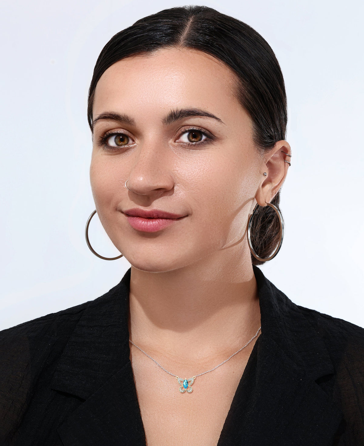 8X4mm Marquise Blue Topaz & Round White Diamond Butterfly Pendant Necklace for Women with 18 inch Silver Chain in 18K Yellow Gold - 18K Yellow Gold