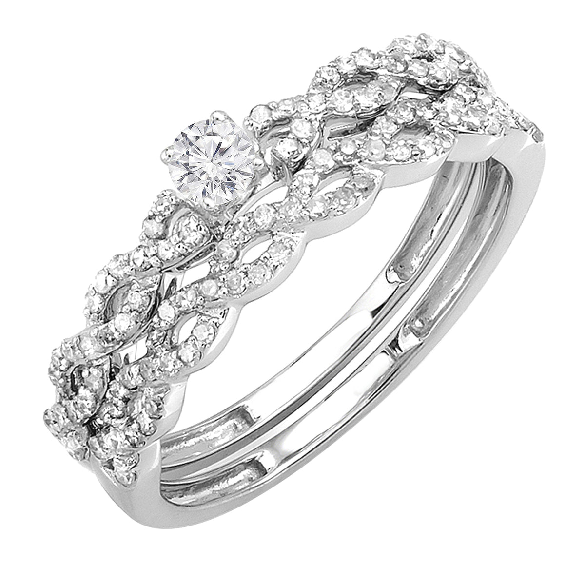 0.50 carat (ctw) 14k White Gold Round Cut Diamond Ladies Bridal Engagement Ring Matching Wedding Set 1/2 CT - White Diamond / 10K White Gold / 4