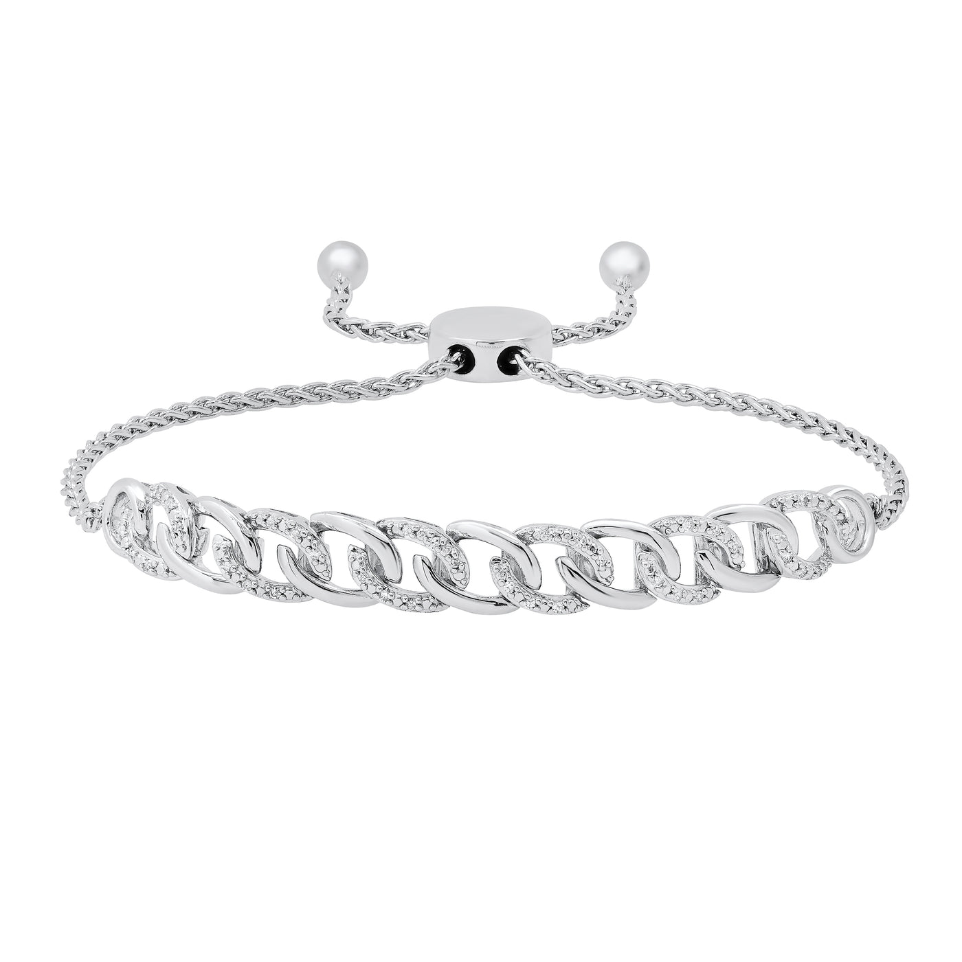 0.12 Carat (ctw) Round White Diamond Interlocking Curb Link Bolo Bracelet for Her | Sterling Silver - White Diamond / Sterling Silver