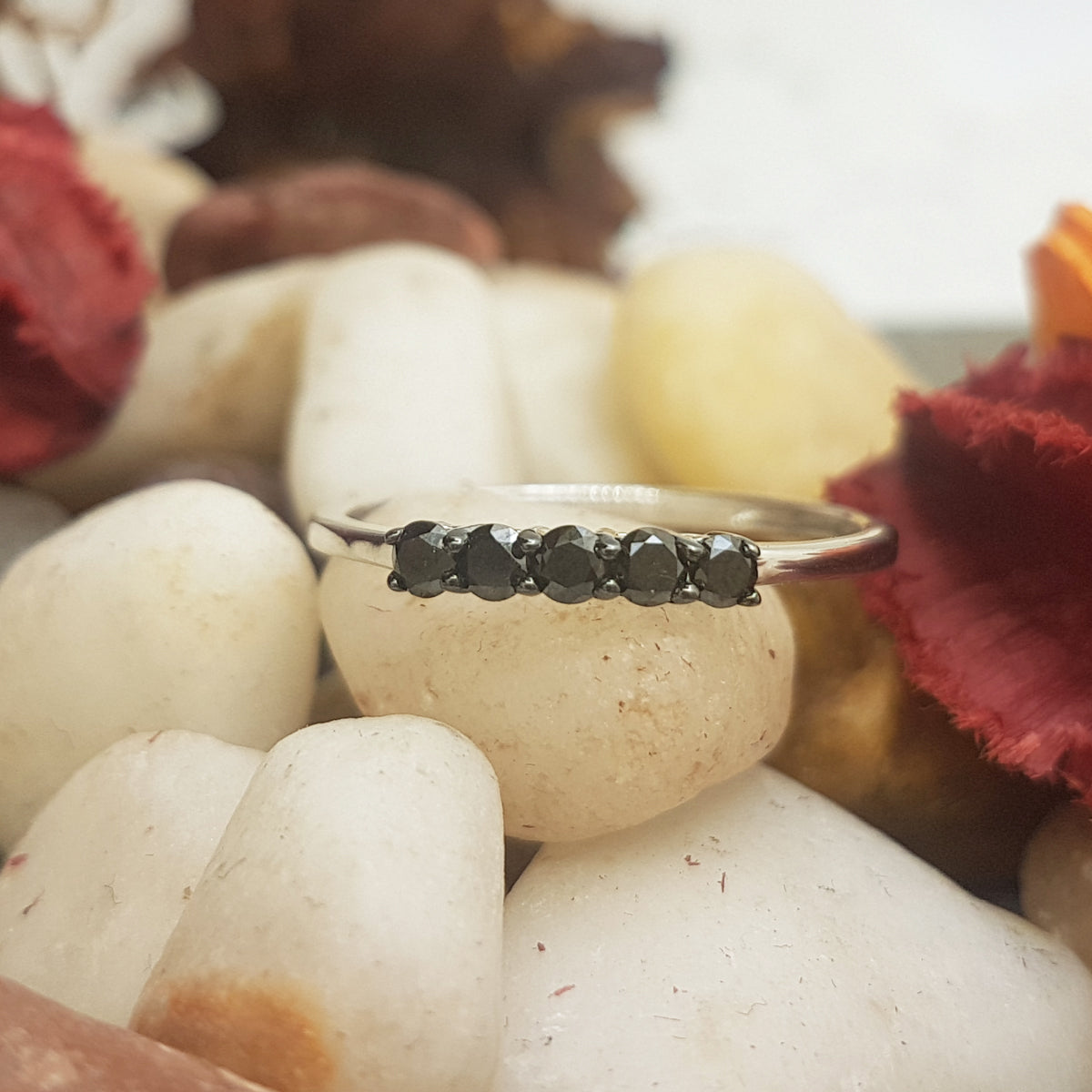 0.37 Carat (ctw) Sterling Silver Round Black Diamond Ladies Anniversary Wedding Band Ring 3/8 CT - Sterling Silver / 5